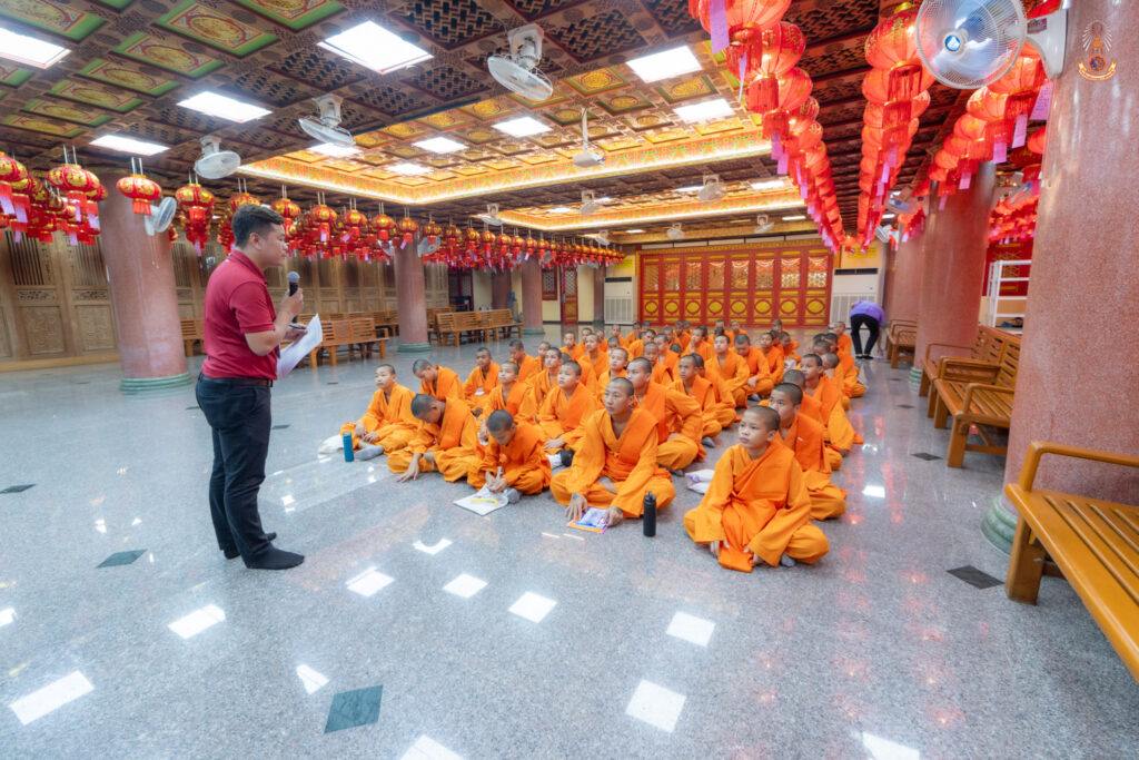 ” ให้พวกเราตั้งอยู่ในความดีมีสติทุกวันหมันประกอบบุรกุศล อย่าประมาทบาปที่เกิดขึ้นให้ละไป บาปที่ยังไม่เกิดเพียรระวังอย่าให้เกิด กุศลที่ยังไม่เกิดเร่งทำให้เกิดขึ้น กุศลที่เกิดขึ้นแล้วทำให้จริญยิ่งๆ ขึ้นไป “พระคณาจารย์จีนธรรมปัญญาจริยาภรณ์