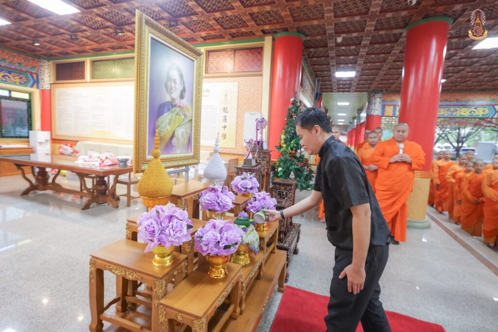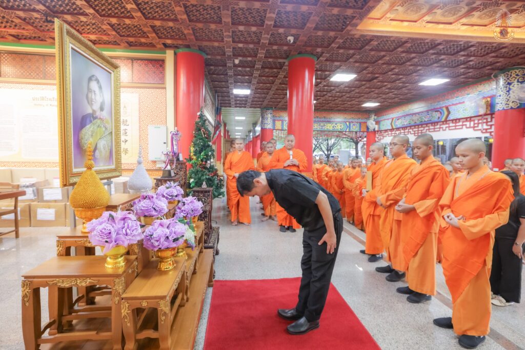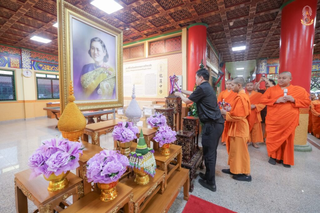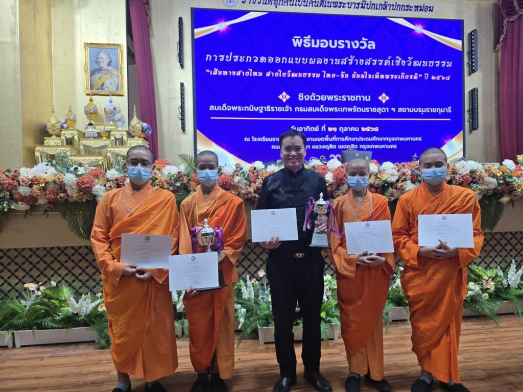 สมเด็จพระกนิษฐาธิราชเจ้า กรมสมเด็จพระเทพรัตนราชสุดาฯ สยามบรมราชกุมารี พระราชทานรางวัลชนะเลิศให้กับสามเณรภาณุพงศ์ ดลประชา 释圣良 นักเรียน รร. มังกรกมลาวาสวิทยาลัยในการแข่งขันประกวดออกแบบผลงานสร้างสรรค์เชิงวัฒนธรรม