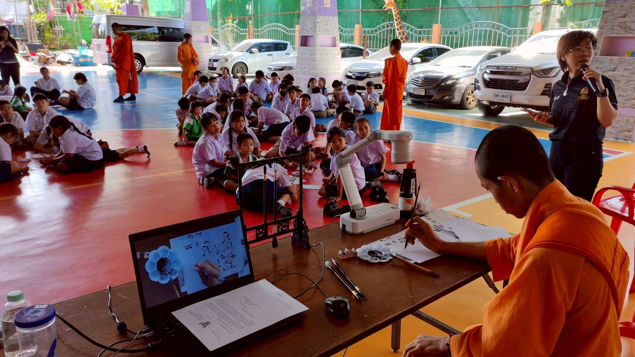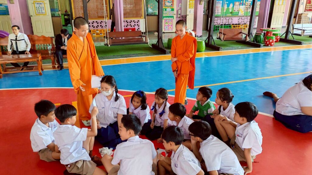 พร้อมด้วยทีมวิทยากรครูและสามเณรนักเรียน ศูนย์วิทยบริการพระพุทธศาสนามหายานภาษาศิลปวัฒนธรรมจีน