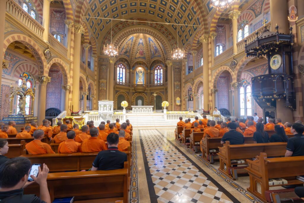 เวลา 13.00-14.00 น. เดินทางไป ณ อาสนวิหารอัสสัมชัญเขตบางรัก เพื่อศึกษาประวัติศาสตร์ คริสตศาสนานิกายโรมันคาทอลิกและเยี่ยมชมสุสานบิชอป และพระสงฆ์มรณสักขีเขต ศาสนปกครองกรุงเทพ